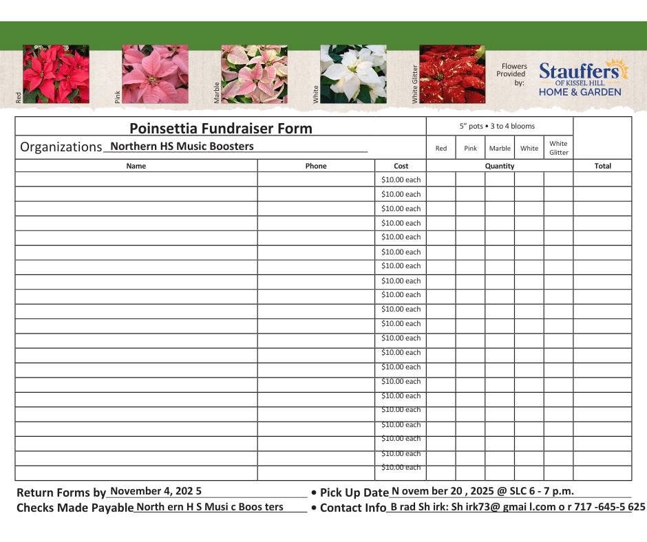 Fundraising is a critical part of being a Northern Music Booster member. Your participation in these fundraisers is critical to the success of all of our student’s music activities. The district does provide funds for all of our music programs, but the Northern Music Boosters must supplement many of these activities.